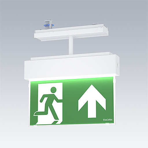 LED Escape sign luminaire; Luminaire for central emergency light supply, for single luminaire monitoring via Powerline in connection with the nBox system, Addressing and Non-maintained/maintained mode setting possible via nBox system, maintained mode as default. , housing made of polycarbonate (similar to RAL 9016), injection moulded; luminaire easy to install; supplied with a set of ISO 7010 mountable direction signs (left, right, up, down and blank) for viewing from a maximum distance of 30 m; zero maintenance thanks to LED technology; service life of 50,000 h at constant luminous flux; uniform backlighting of pictogram; luminance > 500 cd/m² in the white region acc DIN4844. Power supply: 48 V DC (FELV); Luminaire input power: 2.3 W; degree of protection: IP20, class of protection: Class II electrical; Impact strength: IK03; ambient temperature: 0°C to +40°C dimensions of luminaire including escape sign: Dimensions: 330 x 45 x 375 mm; weight: 1.15 kg