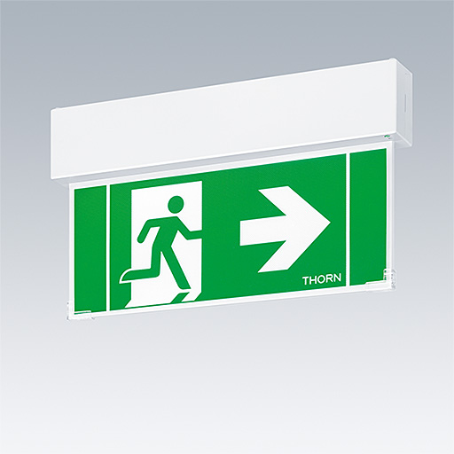 LED Escape sign luminaire for surface, wall or ceiling mounting; Luminaire for central emergency light supply, for single luminaire monitoring via DALI (DALI-2 certified), Addressing and Non-maintained/maintained mode setting possible via the central battery DALI system, maintained mode as default. , housing made of polycarbonate (similar to RAL 9016), injection moulded; luminaire easy to install; Quick fit terminal block, through wiring possible up to 2,5 mm²; supplied with a set of ISO 7010 mountable direction signs (left, right, up, down and blank) for viewing from a maximum distance of 23 m; zero maintenance thanks to LED technology; service life of 50,000 h at constant luminous flux; uniform backlighting of pictogram; luminance > 500 cd/m² in the white region acc DIN4844. Power supply: 220/240 V AC (+/- 10%) 50/60Hz; 176-276 V DC; Luminaire input power: 2.7 W; degree of protection: IP40, class of protection: Class II electrical; Impact strength: IK03; ambient temperature: 0°C to +40°C dimensions of luminaire including escape sign: Dimensions: 330 x 45 x 190 mm; weight: 0.8 kg