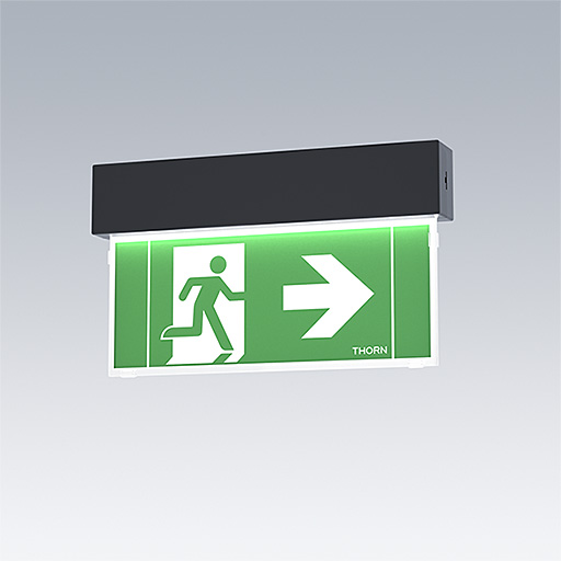 Supplied with a set of ISO 7010 mountable direction signs (left, right, up, down and blank) for viewing from a maximum distance of 23 m, single or double sided view with a luminance > 500 cd/m² in the white region.