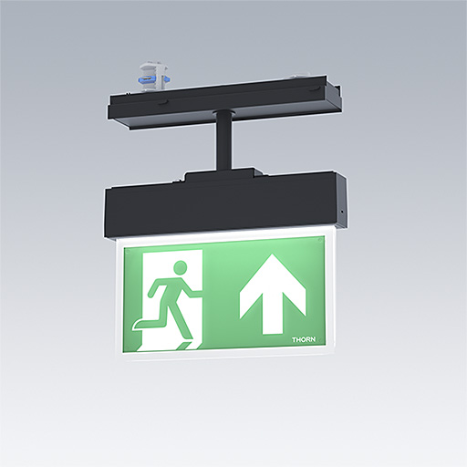 Ultra slim LED escape sign luminaire; Luminaire for central emergency power supply with 230V AC/DC, for single monitoring of the luminaire via Powerline in connection with the eBox System, settable emergency light level; Non-maintained and maintained mode settable via the central battery system; housing made of polycarbonate black; luminaire easy to install; supplied with a set of ISO 7010 mountable direction signs (left, right, up, down and blank) for viewing from a maximum distance of 23 m; mounting of signs with discrete mounting pins; zero maintenance thanks to LED technology; service life of 50,000 h at constant luminous flux; uniform backlighting of pictogram; luminance > 500 cd/m² in the white region; Luminaire input power: 2.7 W; degree of protection: IP20, class of protection: Class II electrical; Impact strength: Impact strength: IK03; Dimensions: 266 x 37 x 295 mm; weight: 0.81 kg