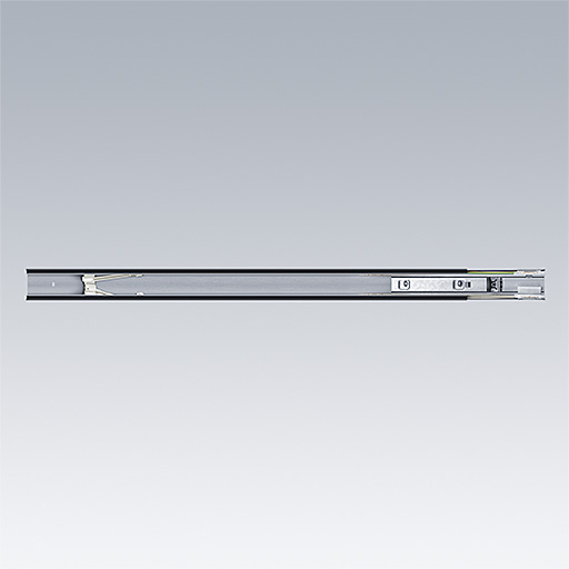Flexible electrical feed-out, black. Roll-formed sheet steel for electrical conection of continous row system. Plug-in connecting terminals for 5 mains cables, 2 x 2 emergency lighting cables and 2 control lines.