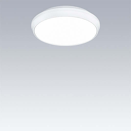 Decorative circular luminaire with small body. Low indirect component for wall and ceiling illumination. Electronic, DALI dimmable. Aesthetic trim of the luminaire made of polycarbonate in white. Diffuser: opal polycarbonate. Class II electrical, IP54. Complete with 3000K LED.
