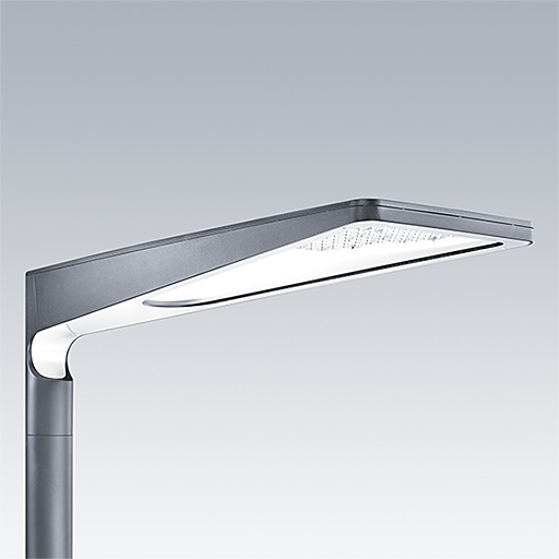 A large size LED urban street lighting lantern with 60 LEDs driven at 500mA with narrow road optic. Electronic, Programmable. Class II electrical, IP66, Impact strength: IK09. Body: Die-cast aluminium (EN AC-44300), textured anthracite. Cover: tempered flat clear glass. Fixings: stainless steel with anti-galvanic treatment. Post top mounting to Ø60mm column. Complete with 4000K LED.