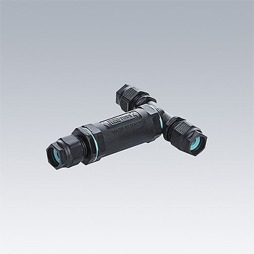 IP68 3 pole tee connector in thermoplastic PA66, mechanical and heat resistant (-40°C/+125°C). Compatible with cable section of 7 to 13.5mm diameter. Max section : 4mm²