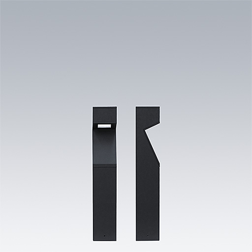 Axyl Geo, a free-standing, decorative LED bollard with asymmetrical distribution. Class I electrical.. DALI-2 dimmable LED driver. , IP65, Impact strength: IK06. Housing: Die-cast aluminium, powder coated textured black (close to RAL9005). Working ambient temperature: -20°C to +45°C. Complete with 2700K LED..