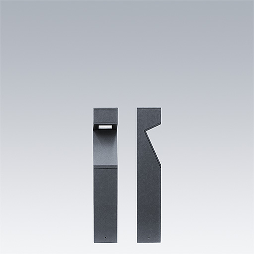 Axyl Geo, a free-standing, decorative LED bollard with asymmetrical distribution. Class I electrical.. DALI-2 dimmable LED driver. , IP65, Impact strength: IK06. Housing: Die-cast aluminium, powder coated textured anthracite. Working ambient temperature: -20°C to +45°C. Complete with 4000K LED..