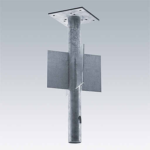 Ground spike adaptor for root mounting bollards with flange plate. Bolts not supplied.