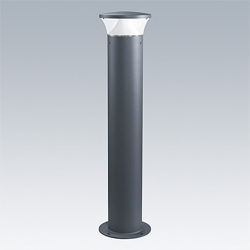 Borne de faible épaisseur, élégante et anti-vandalisme asymétrique avec optique de haute performance. Pour Electronique, non gradable. Classe électrique IP66 l. Mât et socle : aluminium (EW AW 6060). Chapeau : aluminium Moulage sous pression (EN AC 44300). Diffuseur : Polycarbonate (PC) transparent anti-UV. Boîtier appareillage : Polycarbonate (PC). Couleur du chapeau et mât : gris anthracite 900 sablé thermopoudré (similaire à RAL7043). Luminaire Equipé d'un 50% circuit de réduction de puissance, qui entre en vigueur 3 heures avant et 5 heures après un minuit calculé. Il peut être désactivé à l'installation avec un interrupteur interne facilement accessible. pré-câblé et prêt à installer. Boîtier de connexion nécessaire, à commander séparément. Livré avec LED 3 000 K