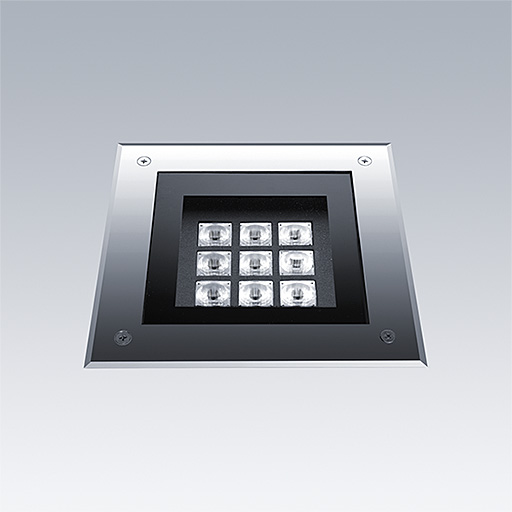 Axyl Opera montage encastré dans le sol, luminaire à LED pour l'éclairage décoratif des façades, avec et distribution asymétrique. Classe électrique I.. gradable DALI-2 Driver. IP67, Résistance aux impacts : IK09. Boîtier : aluminium Moulage sous pression, sans peinture texturé acier inoxydable. Température de service de Température ambiante : -20°C à +40°C. Livré avec LED 2 700 K..