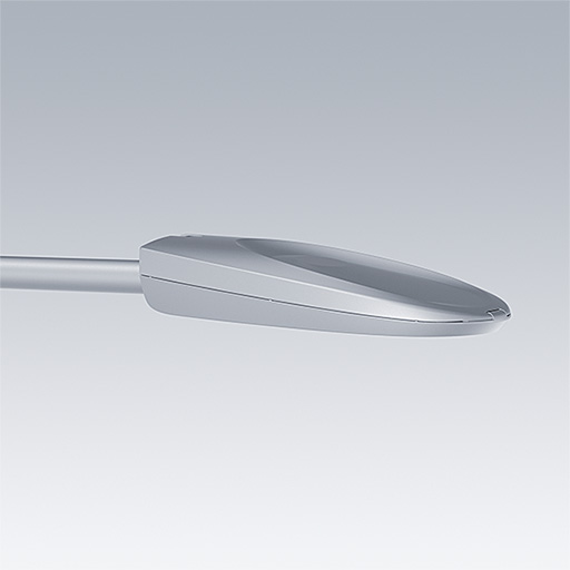 Lanterne esthétique à la pointe de la technologie pour l'éclairage urbain et routier avec 24LED alimentées en 350mA et optique Route étroite. Electronique, non gradable. Classe électrique II, IP66, Résistance aux impacts : IK08. Corps : Moulage sous pression aluminium (EN AC-44300), Gris pâle (150) - partiellement peint. Verre : verre trempé (4 mm) offrant une transmission de la lumière > 90%. Fixations : acier inoxydable avec traitement anti-galvanique. Fixation latérale D 60 mm, 0° inclinaison. Livré avec LED 3 000 K.