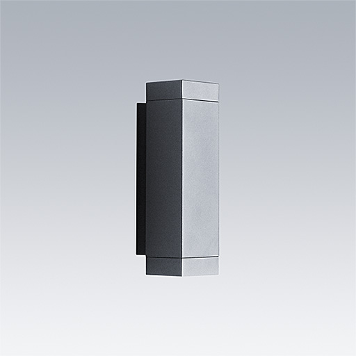 Axyl Glow fixation murale, luminaire architectural à LED pour l'éclairage décoratif des façades, avec 2 échancrures et distribution. Classe électrique II.. Flux fixe Driver. IP65, Résistance aux impacts : IK06. Boîtier : aluminium Moulage sous pression, thermopoudré texturé gris (RAL9006). Température de service de Température ambiante : -20°C à +50°C. Livré avec LED 4 000 K..