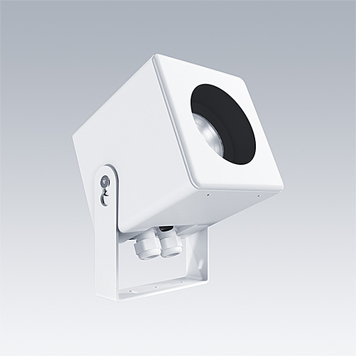 Projecteurs orientables apparents Caelon S pour l'éclairage de façades architecturales, de détails, de niches et de structures. Classe électrique I, IP66 avec. Équipés du convertisseur Gradation via DALI. Corps : aluminium Moulage sous pression blanc. Vis en acier inoxydable. Température ambiante : -20°C à +25°C. Livré avec LED 3 000 K.