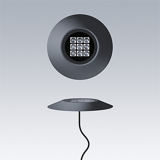 Cesar Bow plafonnier, luminaire à LED pour l'éclairage décoratif des façades, avec et distribution faisceau large. Classe électrique III. Convertisseur à distance DALI2. IP67, Résistance aux impacts : IK09. Boîtier : aluminium Moulage sous pression, thermopoudré texturé anthracite. Température de service de Température ambiante : -20°C à +40°C. Livré avec LED 4 000 K.