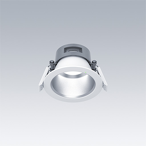 Downlight à LED très efficace et durable avec faible hauteur. Idéal pour le montage dans les plafonds d’une épaisseur de 1 à 40 mm et dans une découpe d’un diamètre de 100 mm avec des clips de fixation à ressort. Convertisseur LED Flux fixe avec télécommande, à enficher, Configuration NFC avec fonction d’éclairage de sécurité de 3 heures et autotest / test adressable DALI. Corps : Moulage sous pression aluminium pour une gestion thermique très efficace avec un taux de recyclage > 90%. Diffuseur : Polycarbonate (PC). Réflecteur et garniture : réflecteur lisse Polycarbonate (PC) finition satinée avec faisceau large. Classe électrique II, IP54_IP20. Livré avec LED 3 000 K