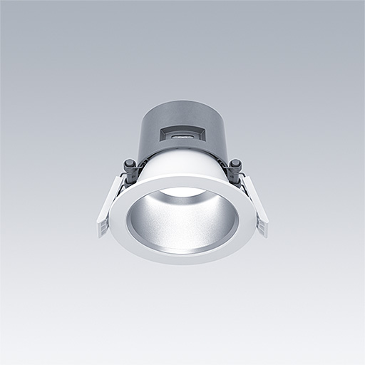 Un downlight LED durable et de haute efficacité avec faible hauteur. Convient pour installation dans les plafonds d’une épaisseur de 1 à mm et une découpe de Ø100 mm avec des attaches à ressort. Driver LED enfichable, à distance, gradable DALI-2 avec fonction DC, réglable de 1 à 100 %, niveau de l’alimentation de sécurité préréglé sur 15 %, configurable avec NFC, compatible SwitchDIM. Câblage à piquage/repiquage possible. Corps : aluminium Moulage sous pression pour une gestion thermique de haute efficacité avec un contenu de recyclage > 90 %. Diffuseur : Polycarbonate (PC). Réflecteur et garniture : Polycarbonate (PC) réflecteur lisse finition satinée avec faisceau large. Classe électrique II, IP54_IP20. Livré avec LED 4 000 K