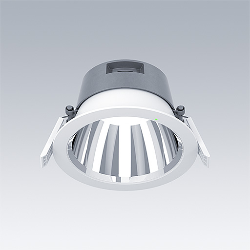 Downlight à LED très efficace et durable avec faible hauteur. Idéal pour le montage dans les plafonds d’une épaisseur de 1 à 40 mm et dans une découpe d’un diamètre de 150 mm avec des clips de fixation à ressort. Convertisseur LED Flux fixe avec télécommande, à enficher, Configuration NFC circuit d’éclairage de secours, test manuel, 3 heures. Corps : Moulage sous pression aluminium pour une gestion thermique très efficace avec un taux de recyclage > 90%. Diffuseur : Polycarbonate (PC). Réflecteur et garniture : réflecteur lisse Polycarbonate (PC) avec une finition brillante pour un meilleure contrôle des éblouissements dans les applications de bureau. Classe électrique II, IP54_IP20. Livré avec LED 3 000 K