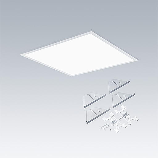 Luminaire LED encastré/plafonnier/suspension. Driver, gradable DALI-2 avec fonction d’éclairage de sécurité de 3 heures et autotest / test adressable DALI. Classe électrique II, IP20, Résistance aux impacts : IK03. Corps : tôle d'acier, blanc (similaire à RAL9016). Diffuseur : Polycarbonate (PC) anti-UV. Optique microprismatique pour un espacement maximisé. Connexion électrique via borniers à poussoirs, avec repiquage possible.