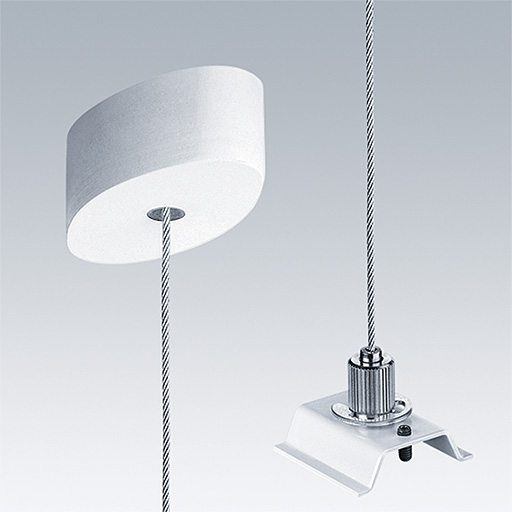 Suspension par câble de 2000 mm en Argenté avec cache-piton rond et câble d'acier galvanisé réglable en hauteur en continu. Câble de suspension et élément de fixation au plafond. Cache-piton elliptique en matière plastique avec possibilité de raccordement de 6 pôles + terre. Clips de fixation en acier à ressorts inoxydable. Les câbles d’alimentation ne sont pas fournis et doivent être commandés séparément. Hauteur : 2000 mm ; poids : 0,2 kg